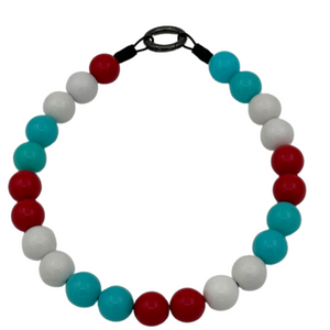 Show your support for the Kansas City Current women’s soccer team with this eye-catching Canine necklace. Crafted with chunky beads in vibrant red, teal, and white, this accessory is perfect for fans and dog lovers alike.